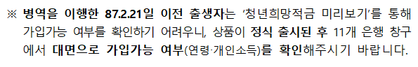 | 청년희망적금 주요 Q&A | 바로가기 |