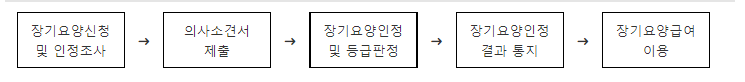 노인 장기 요양 보험제도란? 재산, 소득 수준과 전혀 상관없이 65세 이상 노인이라면 국가에서 요양을 지원하는 제도입니다. 이 제도를 이용하기 위해선 장기 요양 등급을 반드시 받아야 합니다. 장기 요양 등급은 1~5등급으로 나누어지며 밑의 순서와 같이 절차가 진행됩니다.