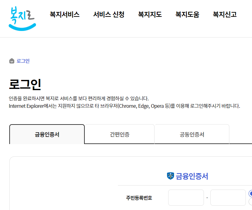 (복지로 - 서비스 신청 - 복지 서비스 신청 - 복지 급여 신청)