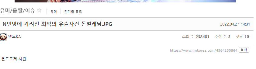 fm코리아에서 정리한 윤드로저 사건(조선일보) | 바로가기 |