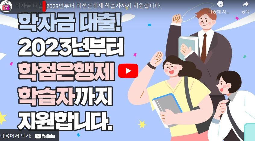 학자금 대출 유튜브 영상 보기(교육부 공식 채널) | 바로가기 |